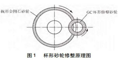 金剛石砂輪修整方法是影響砂輪磨削性能的重要因素,修整方法的合理選擇將直接影響工件的表面質量和磨削精度。目前常用的金剛石砂輪修整方法有: 在線電解修整、電火花砂輪修整、杯形砂輪修整、電解—機械復合修整和激光修整。由于杯形砂輪修整方法較其他修整方法操作簡單易于實現,因此本文采用 GC 杯形砂輪修整技術對金剛石砂輪進行自動修整。