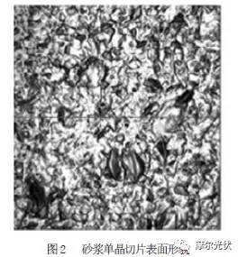 對金剛石線切片表面形貌觀察發現硅片上每條塑性光滑切割紋之間均會有少量摩擦斷裂損傷處,這種損傷處與切割紋底部形成粗糙度差,所以腐蝕速率有較大差異。